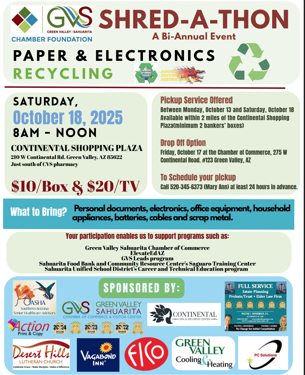 Proudly serving Green Valley, Sahuarita, and the surrounding Southern Arizona region. Supporting local businesses, strengthening community ties, and driving economic vitality.